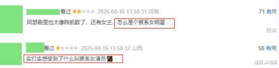 在见识了众多“猴系”男艺人后,观众又涨了一次见识:“实打实的感受到了什么是猴系女演员”。
