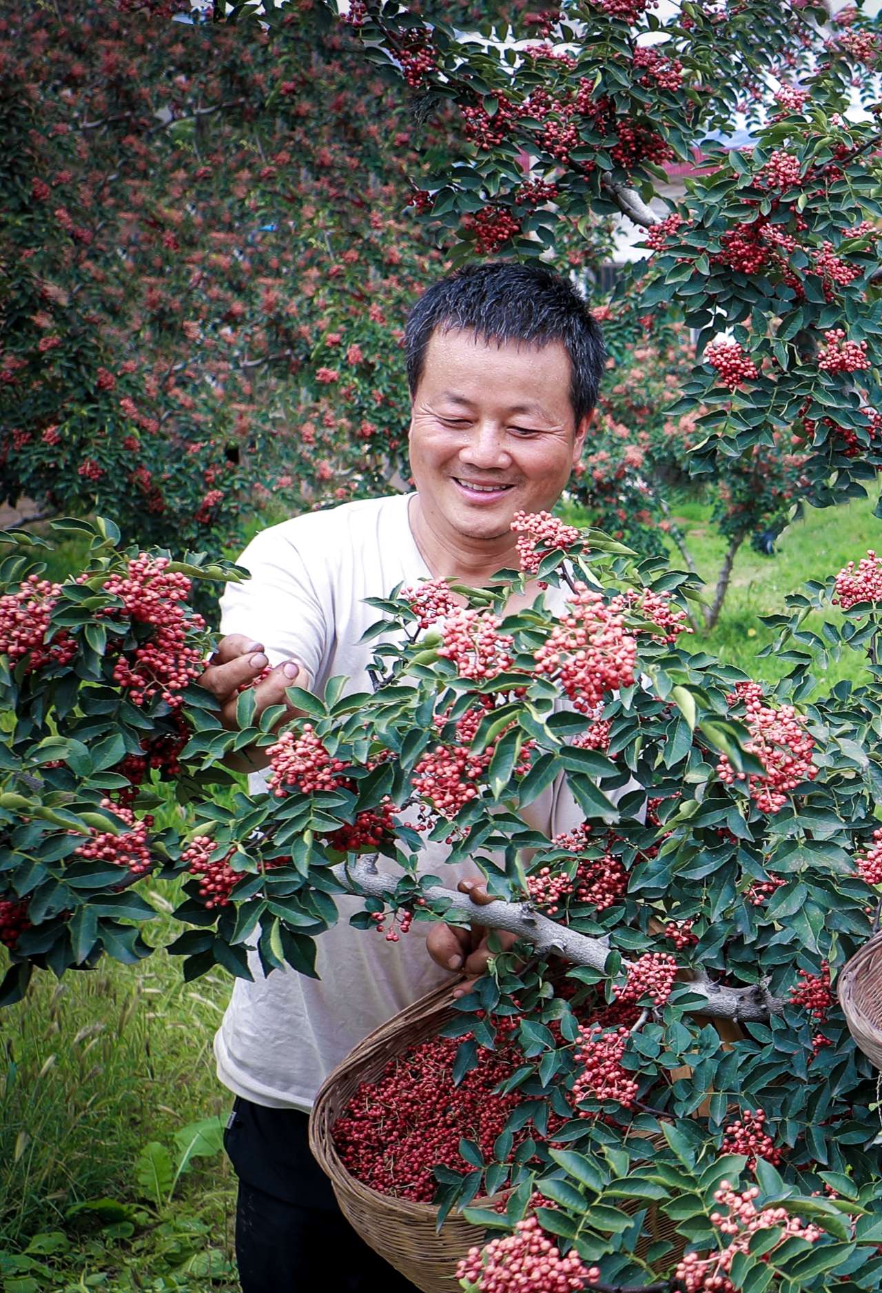 这些花椒是雷卫锋20年初心不改,精心培育的“橘红无刺花椒”,今年首次迎来丰收年。新品花椒树的病虫害发生率降低了60%以上,深受客商青睐,收购价每公斤比普通大红袍花椒高出12元左右。沉甸甸的椒果压弯了枝条,也让雷卫锋的脸上洋溢着抑制不住的笑容。