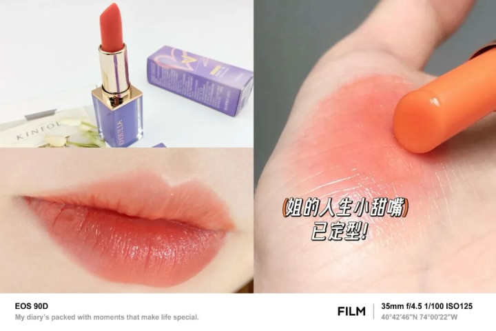 而它真正的魅力就是色号太太太好看了,清透微橘调,素颜涂它就是YYDS,简直嫩到重回高中