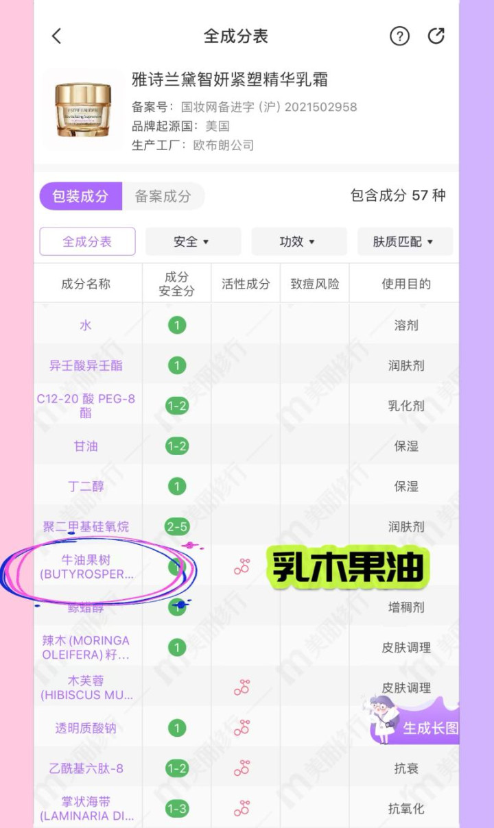 扒了一下它是有两大进口成分——牛油果树果脂(荷兰进口),白池花籽油(美国进口)。